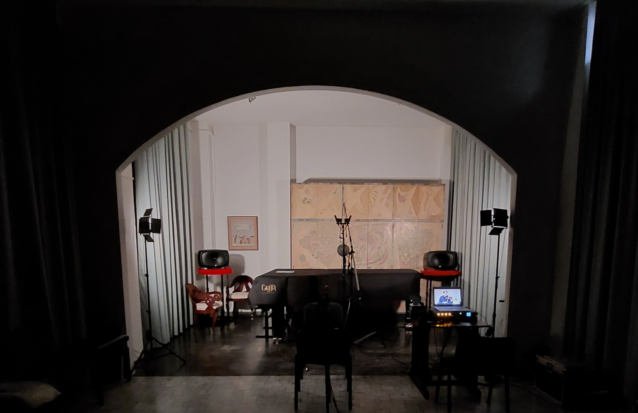 Per comodità il monitor viene eseguito nella medesima sala per consentire agli artisti di valutare immediatamente la qualità della ripresa.